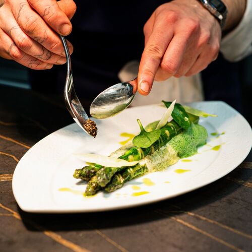 A former pupil of Joël Robuchon, chef Attilio Marrazzo (Château de Noirieux) has set up shop within the walls of this restaurant that used to be run by his mentor. He has put together a packed menu that has something for everyone: the cuisine seamlessly embraces iconic Italian dishes (such as vitello tonnato and veal Milanese) and French classics (beef tartare and exceptional meats). Desserts are one of this establishment's strong suits – the hot hazelnut soufflé being a case in point.