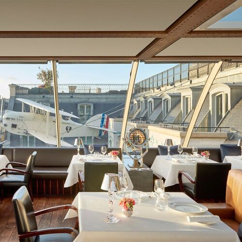 This is the "contemporary French fine dining" restaurant at The Peninsula, a luxury hotel located near the Arc de Triomphe. It is named after the plane in which Nungesser and Coli attempted the first North Atlantic crossing in 1927, and a life-size replica of the plane is affixed to the top of the hotel, as if poised to take to the skies before your very eyes. A fine tribute to the two aviation pioneers, as well as to the sky over Paris! Perched above the rooftops and encased in glass, the restaurant feels like it is in flight over the capital, while the terrace offers a fantastic view of the Eiffel Tower and the Sacré Cœur. A perfect setting in which to sample the fine cuisine of chef David Bizet, which hits the nail on the head in all respects: cooking, jus and sauces, visuals. As for the desserts, pastry chef Anne Coruble treats our taste buds to the fruits of her talents. A great success.