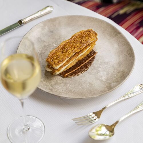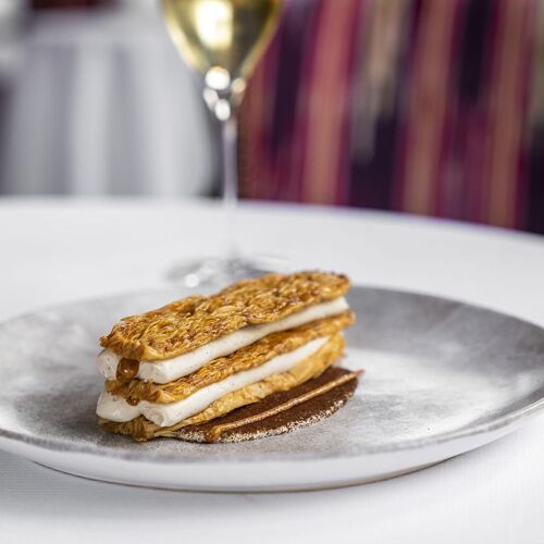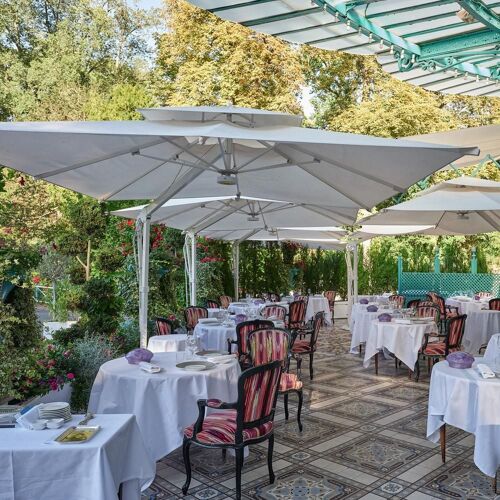 Transformed into a restaurant for the Universal Exhibition of 1900, Empire, Belle Époque and Art nouveau styles culminate in the charm of a rotunda dining room with a glazed roof and a superb terrace. The business clientele comes here to savour the spirit of a bygone Paris and the ‘country’ air of the Bois de Boulogne. Georges Menut lovingly maintains the image of a “grande dame”, but modernity is ensured with the cooking of chef Frédéric Robert, whose cv includes L’Ambroisie, Le Vivarois and Lucas-Carton, and the desserts of young pastry-chef Joris Vée.