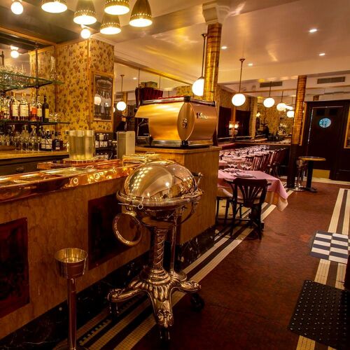 The great classics of the French culinary repertoire are given an overhaul here by Jean-François Piège. Service on a silver tray, old-fashioned bistro decor, zinc counter: it has all the trappings. It's Audiard's Paris down to a T... right down to the food: onion gratinée, quenelle of arctic char, beef chuck hash, Colbert fried whiting with tartar sauce.