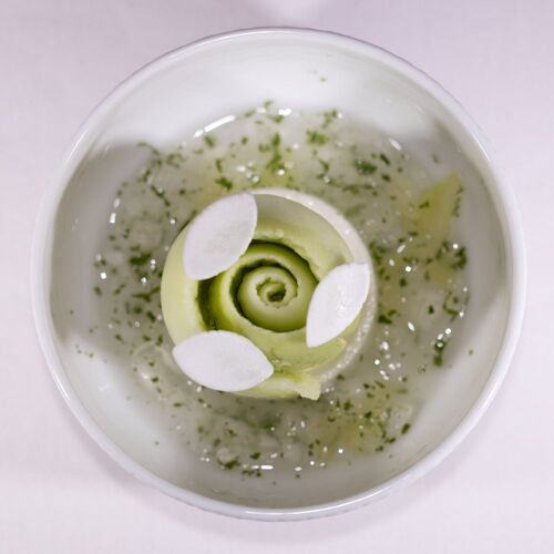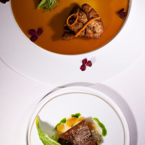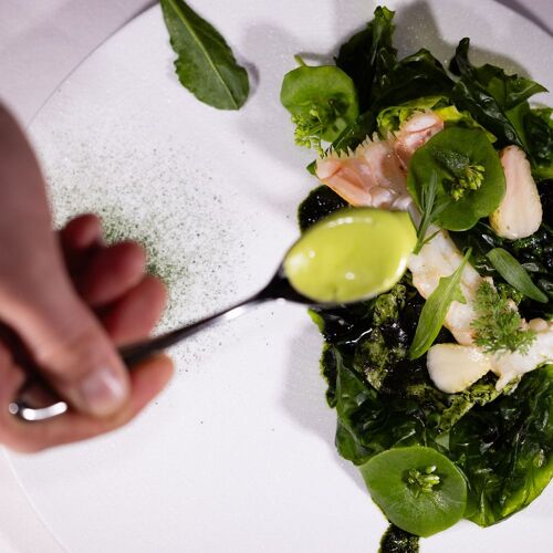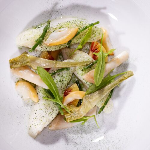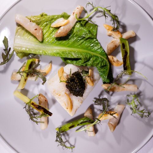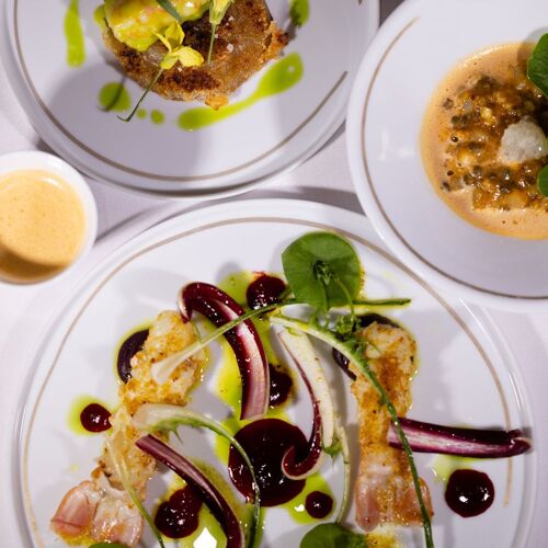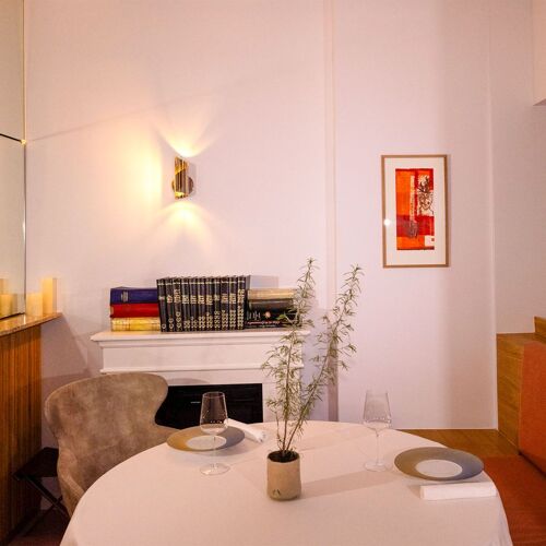 The house spirit reigns supreme in this intimate fine dining restaurant with six tables and a confidential feel. Suffice to say, chef Arthur Dubois – who has clocked up experience in the restaurants of Jacques Maximin, Éric Frechon and Pierre Gagnaire, where he was sous-chef for several years – is in the business of the bespoke. Carefully selected ingredients, tried and tested know-how, impeccable technique: the chef is a dab hand at putting a new spin on classic cuisine. Indeed, the influence of his mentor on rue Balzac makes itself felt in his penchant for "satellite" variations on a theme, as seen in his langoustines "with three flavours" in a buttermilk sauce, or the red mullet with fresh seaweed and rockfish jus with foie gras.