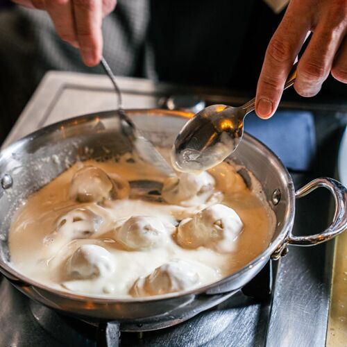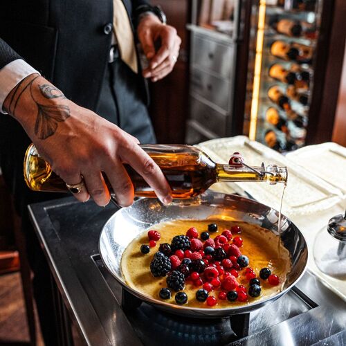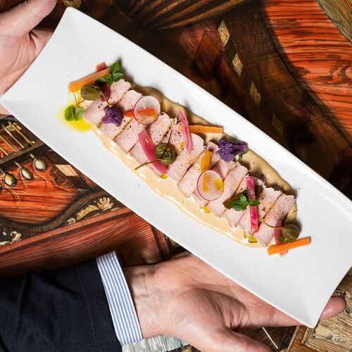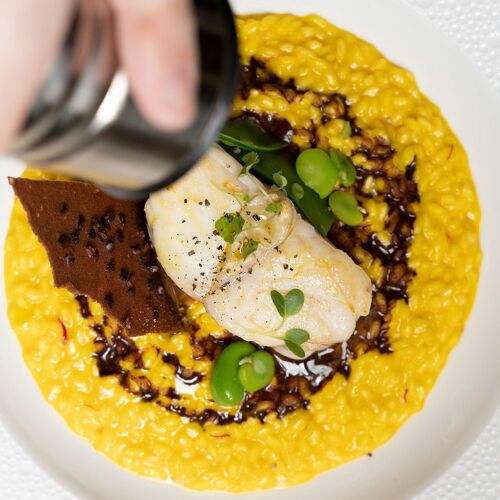 Take a seat here, in front of the former stock exchange, to savour the great specialities of Venice and northeast Italy in an interior by Philippe Starck that evokes the refinement of Venice. Painstakingly chosen ingredients: the veggies come straight from a “respectful cottage garden” and the fish from sustainable sources, like the turbot cooked in butter and prosecco with spinach leaf and cream of celery. Let’s not forget the cicchetti (small snacks) or the delicious ice cream topped with hazelnuts from Piedmont.