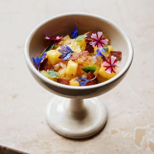 The restaurant’s name is a fusion of the chef’s first name, Mory, and that of Yasuke, the first and only African samurai of Japan, which rather sets the scene. The chef successfully mixes his Malian and Senegalese roots, his fascination for Japan and, of course, his passion for Gallic food and techniques. The end result is inspired and original, featuring dishes that are distinctive, accomplished and sprinkled in a melting-pot of flavours: flame torched langoustines, achu sauce, piquillos and aromatic herbs; confit of croaker, kik alicha, fermented cabbage and confit citrus fruit; Aubrac beef matured in karite, mafé sauce, tamarind and togarashi shichimi. Food that opens new horizons!