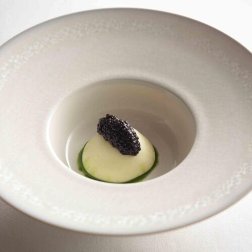 The passion Japanese chefs show for French gastronomy is once again demonstrated by this surprising restaurant whose bare white walls evoke the unwritten pages of a book. Ryuji Teshima, alias Teshi, learned his craft in top establishments before deciding to pursue his personal and contemporary version of Gallic fare, based on fine produce : shellfish and fish from Normandy and Brittany, poultry from the Perche – there is even a small fridge for maturing beef, including wagyu. The “surprise” menu features a mix of colour and flavours which work like a dream in the mouth, with precision cooking and the occasional use of a small binchotan barbecue to add a distinctive charred note. The open kitchen is always an intriguing and entertaining sight for diners…