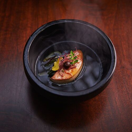 If there are "writers' writers", then there are chefs' chefs. A Meilleur Ouvrier de France, a mainstay of the Ferrandi gastronomy school, promoter of culinary design, restaurateur in Tokyo, Éric Trochon is that sort of chef – admired and yet relatively little known. He and his sommelier wife preside over this elegant, intimate-feeling restaurant with a decor that blends Brazilian rosewood furnishings and paintings and ceramics by a Korean artist. The menu also errs towards minimalism, with on-point proposals including an omakase menu. The dishes showcase modern cuisine with Asian touches, such as fillet of beef with eryngii and shimeji mushrooms, gochujang and bitter Korean salad. Two places with a view into the kitchens are available at the counter.