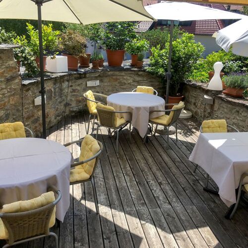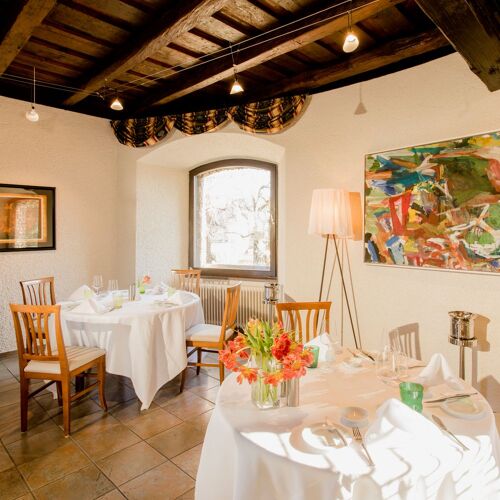 The keep of the medieval St Veit fortress is a truly remarkable setting. Nestled within the historic walls and surrounded by greenery, the small terrace is a particular highlight. This restaurant is run by husband-and-wife team Rosemarie and Ammar Trabelsi, who create a welcoming atmosphere with a personal touch. The Sicilian presides front-of-house and has charm in his blood. His dapper, old-school style is anything but stuffy. She is in charge of the kitchen and cooks up ambitious Italian and Mediterranean cuisine using select ingredients. Her dishes are pared down to just a few components, allowing their natural flavours to shine through. Turbot with samphire and datterini tomatoes or house-made paccheri with wild prawns, tomatoes and rocket are prime examples. Fish and seafood take centre stage and vary depending on what the market has to offer. The tasting menu is definitely worthwhile, but you can also order à la carte. Italian wine list.