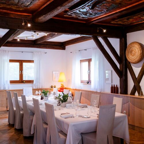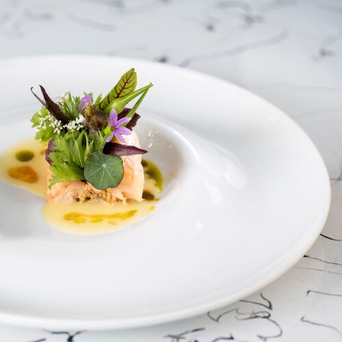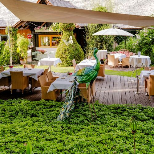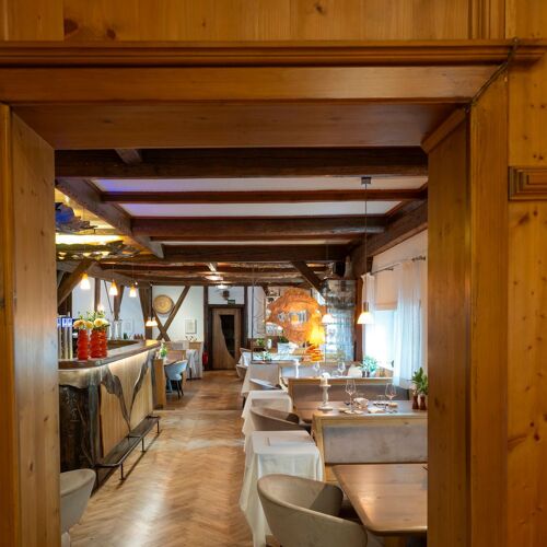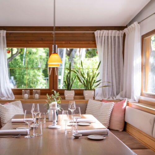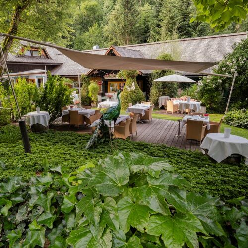 This is a great place with a host of standout features: picture a converted old sawmill that is set in a quiet, idyllic location and boasts a sensational garden terrace with tables within spitting distance of the neighbouring forest! Works by various artists adorn this charming spot. The interior, too, is beautiful, combining traditional charm (the elaborately carved wooden ceiling is striking) with modern features. On top of this, the cordial Sicher family are strongly invested in their work in the kitchen and on the restaurant floor. They propose an ambitious and creative seasonal set menu as well as more down-to-earth à la carte dishes, such as whole trout or char. Pride of place is given to the restaurant's own fish farm, as well as produce sourced from its own farm or regional producers. The speciality is the famous "Sicher" char caviar.