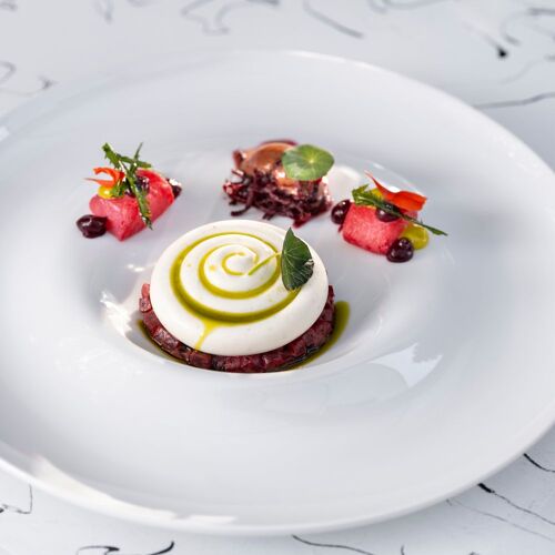 "Many customers and guests are familiar with our sustainable fish and caviar products, but we are also 90% self-sufficient in the restaurant! We run a biodynamic farm, a herb garden with more than 200 plants, vegetables and lettuces. We also grow rare varieties such as yam, Jerusalem artichoke, crosne, blood apples and goji berries. Furthermore, we only use green electricity and wood from our own farm for heating."