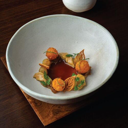 The airy, minimalist room atop a sky-scraping hotel tower commands breathtaking cityscapes and is the epitome of casual elegance. The Japanese chef honed his skills in prestigious European kitchens before taking the helm here. The deftly crafted French menu sports subtle Japanese twists. Order à la carte dishes or go for the Chef's Degustation menu for dinner. Though the menu changes quarterly, the must-try beef, dry-aged in house, is a firm fixture.