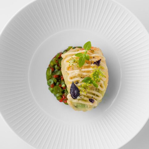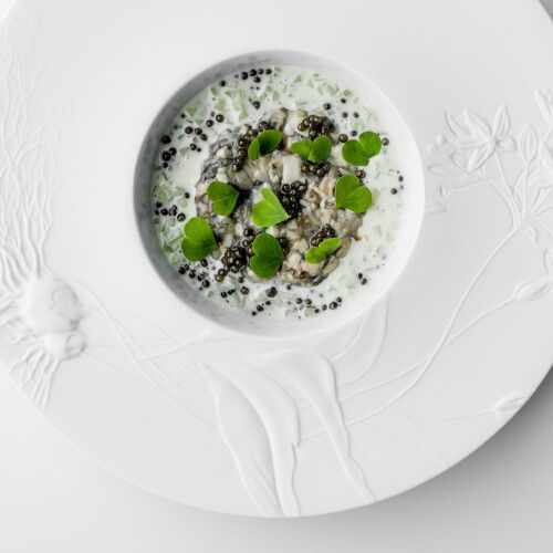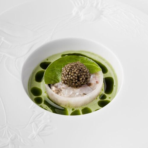 The stripped-back, elegant interior of this Rooster in the Fields is a feast for the eye and this attention to detail can also be tasted in the plate. Christophe Pauly, who carefully considers every tiny detail in his open kitchen, is going from strength to strength. His spot-on dishes conjure up a festival of flavours with a voluntarily concise range of ingredients as he elegantly and precisely pursues his quest for culinary excellence. He plays with sweet and sour flavours to enhance dishes which he underscores with subtle sauces. Courgette flowers are stuffed with langoustines and dipped in a rich tempura batter, which are served with a dollop of soy mayo to accentuate the savoury flavours, while piquillos add a final spicy flourish. Deceptively simple recipes are the hallmark of this high-flying chef in search of culinary perfection. This credo is also visible in the fascinating pairing suggestions made by the knowledgeable sommelier.