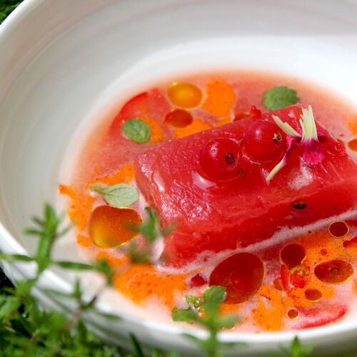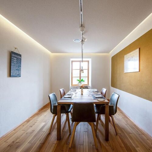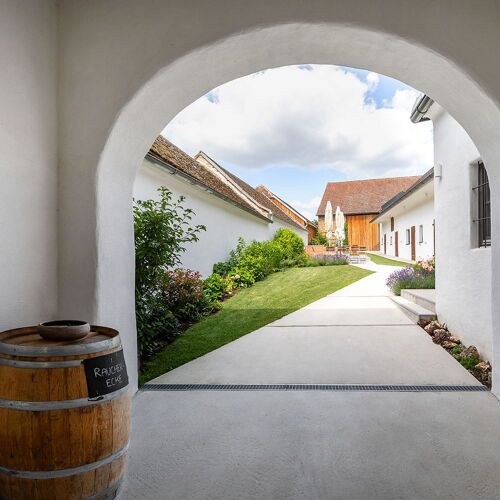 This restaurant is located in a charming old farmhouse right next to the Josef Fritz winery. The interior is elegant and attractive, with minimalist-style decor; outside, the courtyard offers a delightful setting for summer dining. The kitchen presents a four- or six-course set menu that draws inspiration from Nordic cuisine but also incorporates international influences. The dishes are packed with flavour and many of the herbs used are grown in the courtyard. A vegetarian version of the set menu can be arranged if you order in advance.