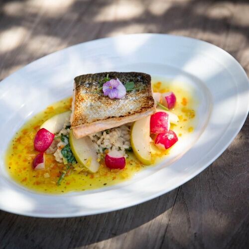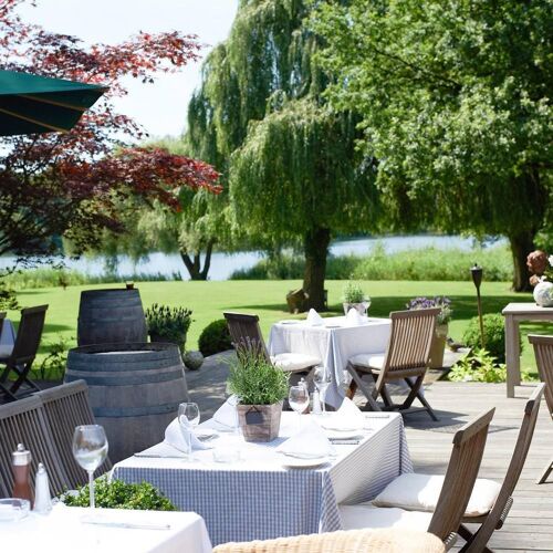 A pleasant dining experience: a lovely country-style interior, great terrace and views of the garden and lake. The food is seasonal and regional. You can also get hold of your own copy of their recipe book. For overnight guests, there are really pretty, individually decorated rooms available.