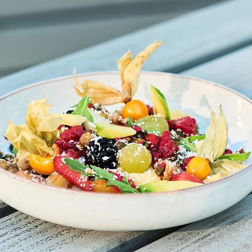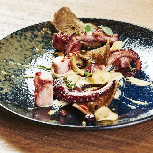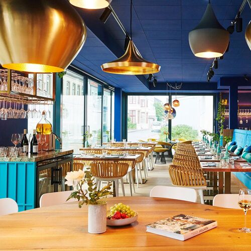 At the restaurant of the New Wave hotel, the food is down-to-earth and delicious, and while it revolves around the region, it has an international twist – for example, the menu features dishes such as "Japanese-style grilled wild sea bass fillet" and the interesting "Oktopussy" set menu (also available in a vegetarian version). The sleek, modern interior with a maritime feel, an open kitchen and a custom-built table for larger groups is appealing. Service is cordial and laid-back. In summer, make a beeline for the secluded courtyard terrace. From May, the rooftop bar is open for delicious cocktails in a relaxed atmosphere.