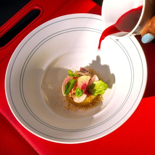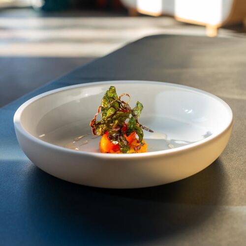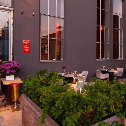 Located on an industrial estate, this distinctive building makes for a cool setting. The attractive space rocks an industrial look: out front, there is a lovely terrace next to a striking brick chimney; inside, a loft atmosphere reigns. Diners sit beneath high ceilings, surrounded by exposed brick walls, tall mullioned windows and chic design features such as the solid wood "Center Table" and comic art on the walls. While Randy de Jong and his team create a modern, seasonal, ingredient-led set menu based on just a few key components (for example, pikeperch, shallot, pumpkin, bergamot or sweetbreads, kale, banana), hostess and owner Thayarni Garthoff manages a highly professional front-of-house team and maintains a relaxed atmosphere – the chefs serve some of the dishes themselves. Lunch is also available on Saturdays.