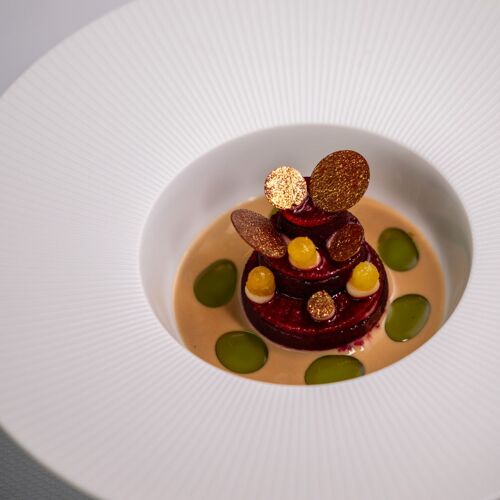 These two step-gabled houses from 1614 take you back in time . From the open fireplace with matching tiles to the romantic candlelit setting, silver cutlery and beautiful porcelain plates, everything here exudes Dutch charm at its best. The menu features exquisite, intricate dishes that showcase Dutch produce. The young chef has a keen eye for freshness, as demonstrated by the foamy mussel sauce he uses to elevate the salty symphony of mussels and seaweed. With its good selection of natural wines and a penchant for French labels, the wine list is definitely worth a look.