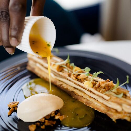 The name of this restaurant may refer to the close bond between the chef and the sommelière (who are partners in life), or the association of food and wine – the couple’s respective passions, or to the two set menus served in two separate dining spaces. The first is a “tasting bar”, which rolls out dishes to share that tap into influences from far and wide (ceviche of croaker, ceviche juice and guacamole); the second is dedicated to fine dining with two tasting menus (and a third more concise score at lunchtime). The chef, who finds his inspiration in Normandy’s first-class fare and culinary heritage, draws on his years of experience in top flight restaurants to create modern cuisine with just the right touch of creativity. We recommend his new spin on the tarte Tatin with a calvados soufflé.