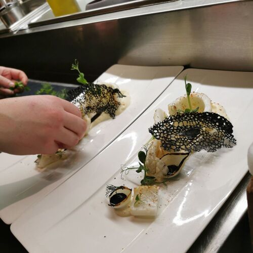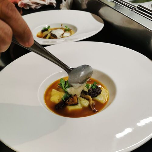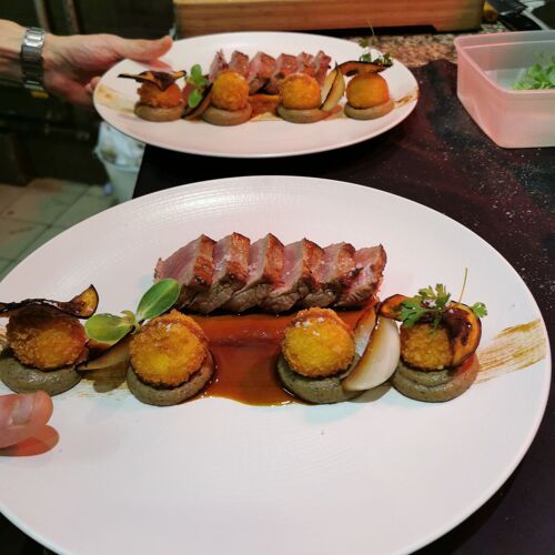 At this town-centre restaurant, discover the cuisine of Gildas Gautier, a chef who is passionate about premium ingredients. Stuffed cabbage with beef shank, porcini, yuzu and oyster mushroom broth; wild sea bass, spinach and cauliflower; crêpe Suzette ravioli with salted butter caramel: tempting traditional recipes prepared in time-honoured tradition, with regularly changing options on the blackboard. In fine weather, dine on the small patio.