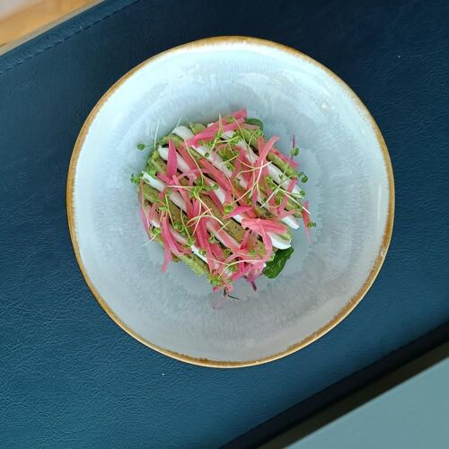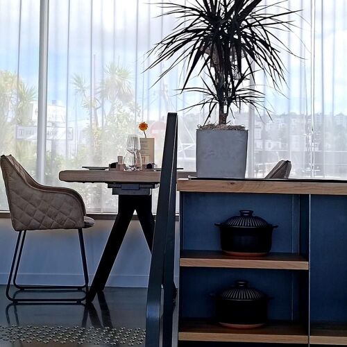 Pierre and Lydie now reign over the revolving bridge in a swish, modern edifice whose glazed walls command a matchless view of the harbour. What better venue to celebrate the fish from small boats, lobsters and shellfish from Cotentin, so beloved of the chef? The entirely meat-free menu focuses on surgically and delicately curated seafood, sprinkled with creativity and the odd distinctive Japanese or exotic touch: a Salsa Criolla of red mullet; pollock in yuzu and milk kefir; fillet of seabass with cockles and green veggies in ginger beer…