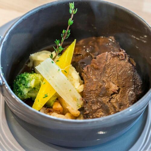 Just a stone's throw from the romantic ruins of Hambye Abbey, this hotel and restaurant run by a welcoming and dynamic couple is well known among locals. The chef learned the trade here before moving on to other reputable establishments; now he is back, producing tasty, no-frills cuisine with solid traditional foundations. The risotto with Pont l'Évêque cheese, andouille sausage, a hint of cider vinegar and a crunchy tuile, for example, is a generous and tasty starter. Excellent value for money.