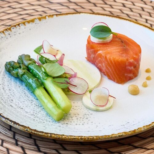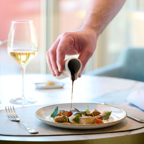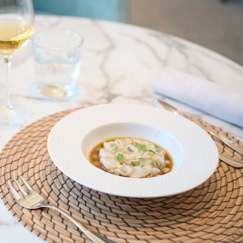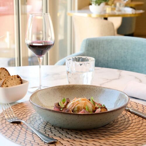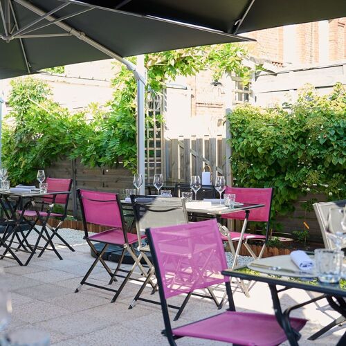 The chef, a local man, has come back home after clocking up some excellent experiences elsewhere in France. He prepares honest bistronomy dishes: poultry mousseline, herb biscuit and vegetable pickles; veal blanquette, crispy rice and thyme-lemon cream; baked apple douillon, tonka bean ice cream. There are two dining spaces to choose between: the first is a traditional bistro-style setting; the second is contemporary and cosier, with access to the terrace.