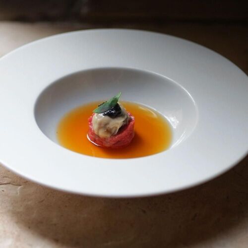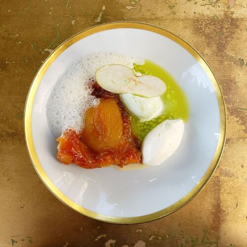 This manor house overlooking the Seine is the HQ of David Goerne, a German-born chef in love with French cuisine. He unfussily invites guests to take a seat at the ‘table d’hôte’ in his vintage kitchen, whose walls gleam with copper utensils. In fine weather, meals are served on the panoramic terrace gazing down on the River Seine and Brotonne bridge. David enjoys improvising in front of diners, subtly and creatively incorporating herbs, peppers and other seasonings to highlight the essence of each ingredient. Enhanced by a genuine bouquet of herbs and flowers and a lemon emulsion, his incredible medley of fresh garden veggies on an egg yolk marinated in soy sauce sings an ode to the miracle of nature. Although a fervent champion of vegetables, David is also at home with lobster, foie gras or squab, depending on his whim and the seasons.