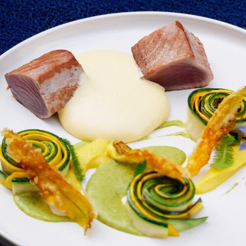 Just a stone's throw from the Place du Vieux Marché, this navy blue storefront certainly catches the eye. A couple of industry professionals, Laure Touyre on the restaurant floor and Brice Legrand in the kitchen, serve up modern, accomplished cuisine. The menu focuses on just a few items, allowing the chef to cook market-fresh cuisine with top-quality ingredients, such as line-caught meagre and green asparagus – delicious and aromatic. A contemporary bistro with a clear sense of identity; friendly, smiling service.