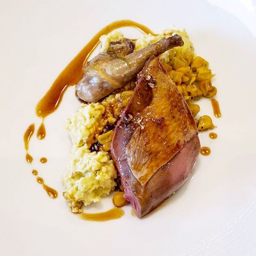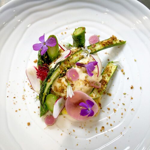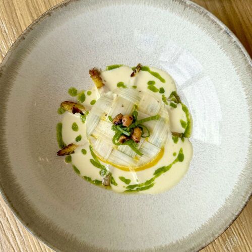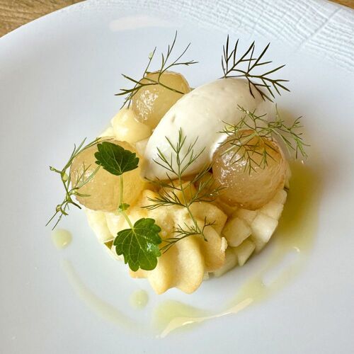 In this pretty little marina on the Cotentin Peninsula, a seasoned couple have turned a fish wholesale warehouse into a charming bistro, overflowing in maritime character. Shellfish and fish from a village fishmonger, veg from Val de Saire and lamb from Tatihou jostle for position on a “High Tide” menu that changes fortnightly. Each dish embodies the pleasure the chef takes in cooking and his partner's joy in providing attentive service. Knock-out lunchtime menu.