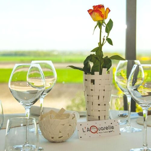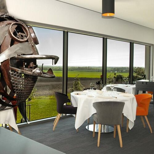 This impressive cubist structure is just the ticket for a gourmet interlude in the heart of the Royan countryside. Chef Xavier Taffart is the son of an oyster farmer, so he knows a thing or two about oysters. His occasionally playful dishes are a testament to his inspired creativity and he works only with the finest local ingredients. A fan of surf ‘n turf combinations, he doesn't shy away from daring pairings: brill cooked at 57°C, curry of Swiss chard leaves and green olives; suckling lamb cooked several ways, turnips/razor clams, a leafy jus and chickpea seasoning… Clean designer lines set the scene in the large panoramic restaurant, including in the tableware, which features contemporary porcelain by an artisan from Poitiers and knives by a cutler from La Rochelle. This eye for detail is equally present in the exquisite plating that demonstrates the chef's artistic bent.