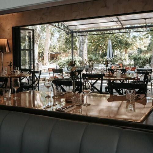 Château de Montcaud's chic new bistro serves traditional Southern French cuisine, with priority given by chef Mathieu Hervé to local, often organic ingredients: poultry and foie gras pâté en croûte, vegetable pickles; tomato gazpacho, watermelon granita and shiso leaf; rockfish three ways, bouillabaisse-style fish soup. The shaded terrace looking out onto the grounds is pleasant; plus a warm welcome and cordial service await.
