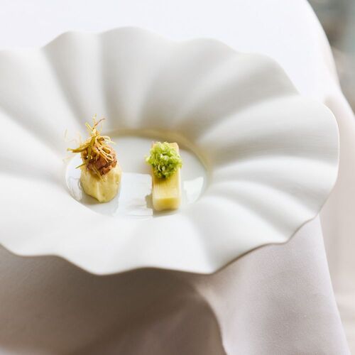 Davy Devlieghere is back in his native village in the company of Marie-Julie, your hostess. This tastefully restored farmstead oozing with character sports a luxurious vibe and a tasteful colour scheme to celebrate French fine dining. First-class ingredients, like Anjou pigeon and sole, are allowed to shout their name thanks to last-minute preparations and rich sauces. The chef is a fan of wholesome, big-boned recipes, although he isn’t averse to sneaking in the odd exotic note.