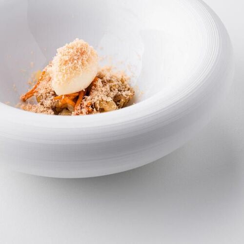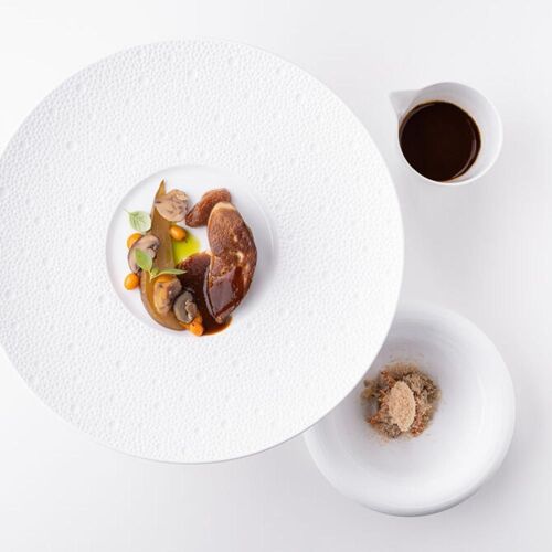 Nothing leaves the kitchen that chef Lode De Roover has not preened to perfection. From the surgically sliced vegetables to the spot-on cooking times and inspired plating, this fan of outstanding classical produce leaves nothing to chance, without forgoing the opportunity to treat himself to the odd creative and unexpected original touch. His signatures include subtle barbecued langoustine with lemongrass oil, lemon zest and a whey foam laced with shellfish jus or a medium rare fillet of Barbary duck flanked with a mind-blowingly rich jus and a crisp springtime medley of asparagus and broad beans. De Roover has a knack for combining a few highly distinctive ingredients into dishes that impress by their succulent harmony. All the more reason to book a table at Fleur de Lin and treat yourself to a feast of rare delicacy. This pared-down, contemporary establishment set in a former linen manufacture marvellously demonstrates the overriding importance of consistency and quality in the catering business - a genuine haven for food lovers.