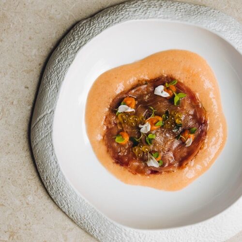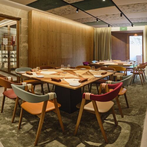 Tierra y Vino is part of the 18C Palacio de Samaniego, now converted into a luxury boutique hotel. Here, Portuguese-born chef Bruno Coelho offers his guests an à la carte that is constantly evolving and centred around locally sourced seasonal ingredients and dishes with added Galician and French culinary touches, alongside an interesting tasting menu (Edmond) that can be accompanied by two different wine pairings. The restaurant also houses a collection of works of art belonging to Baroness Ariane de Rothschild.