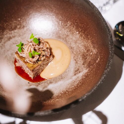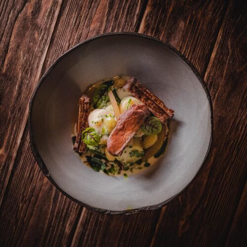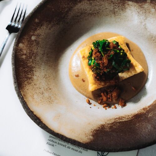 Three hours pass in a flash at this intimate little restaurant, which is proudly run by a friendly couple. Dinner starts at 7pm, with Fanni welcoming guests and looking after their every need. Dávid, meanwhile, is behind the scenes preparing a very personalised 10-course set menu that combines classic Hungarian favourites with family recipes and his childhood memories. Dishes have a feel-good factor, from fried bread drizzled with bacon fat followed by mama’s grilled chicken to an isler sponge cake – and Dávid tells their story to the room as he brings them out of the kitchen or finishes them at the table.