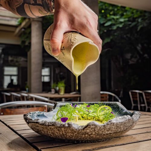 Owners Brigi and Bence have created what they feel is their perfect restaurant in Teyföl, whose name translates as ‘sour cream’ – an ingredient used frequently in Hungarian cuisine. The restaurant sits within a characterful period building on a narrow cobbled street in the Old Town, and its bright, modern bistro-style interior provides a complete contrast. Multiple flavours, textures and colours come together in classically based dishes with a well-restrained level of creativity, such as confit chicken pancakes or a gypsy-style roast.