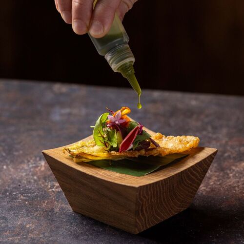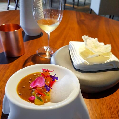When you hear ‘Never stop believing’, you might begin to think of football; but here it is the motivational motto that chef Diego Fernández lives by! In this surprising restaurant, located in a somewhat disruptive chalet-style with a large garden surrounded by farmland, you will find contemporary urban interior design and a menu that exudes personality, as it moves away from Asturian flavours to reveal a fusion cuisine built around Indian, Mexican and Southeast Asian flavours. The dishes, which are balanced, elegant and based on domestic produce, are presented in three tasting menus (Corto, Diego and Hedonista) that reveal the chef's mastery of both the tandoori oven and the preparation of different curries and homemade moles. A standout dish? His lobster marinated in fenugreek oil, red prawn curry and green mango, pickled vegetables, and agripicante (spicy and sour) balchão with tandoor naan bread.