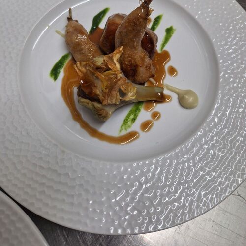 Fleur de Sel, taken over by a couple of young industry professionals, Alexis Cachat and Chloé Feuillet, has the requisite crunch, freshness and flavour. The promising pair met while plying their trade at a MICHELIN-starred restaurant in the Massif de l'Estérel, and are now delighting their own guests with meticulous Mediterranean cuisine. Taking their cue from the seasons, they offer good value for money: courgette flower stuffed with ricotta, olives, anchovies, fresh herbs, gazpacho and crunchy local courgette. Chloé not only provides cordial service, she is also in charge of desserts: think brownie with roasted hazelnuts, vanilla cream and candied apricots with rosemary.