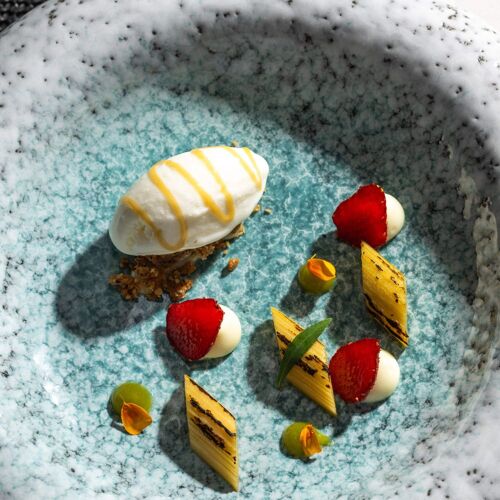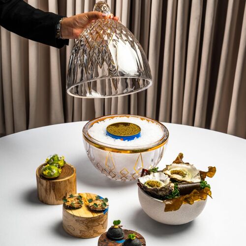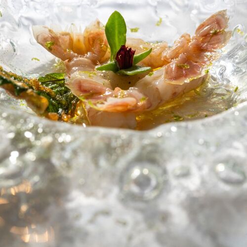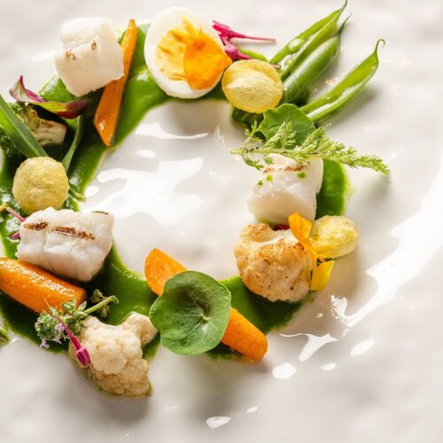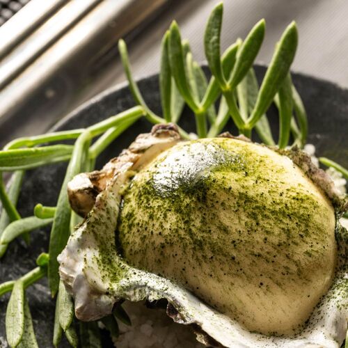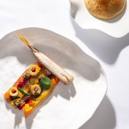 Located within a hotel overlooking the port of Carry-le-Rouet, this fine dining restaurant boasts stunning panoramic views of the sea and the Frioul archipelago. Beyond a gorgeous enamelled lava stone bar, diners drop anchor in a space done out in a maritime decor (shades of white and blue) with marble flooring. Chef Ilane Tinchant has a proven track record, having previously worked at Villa Madie and Sylvestre Wahid. The kitchen lovingly showcases the Mediterranean: first with seasonal produce, local bread and olive oil from Les Baux-de-Provence, but above all with a seafood-oriented menu featuring all manner of marine life. The chef's signature dish is a good example, exploring cuttlefish – textures, served confit in its ink, tempura and a "cloud of garlic". The focus is on the sea, both when it comes to the food and the view from the terrace.