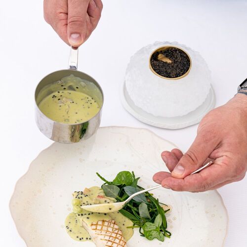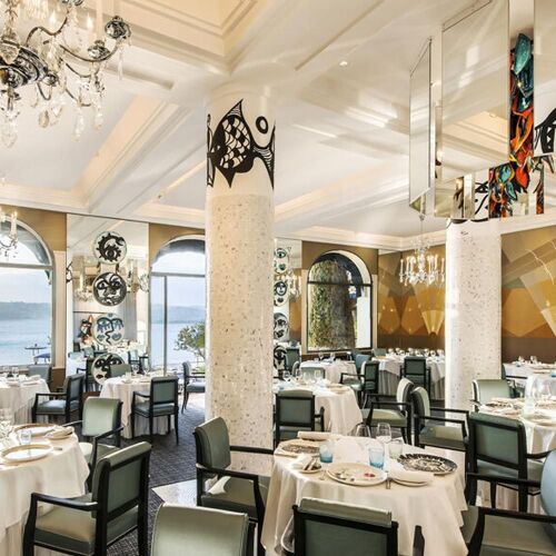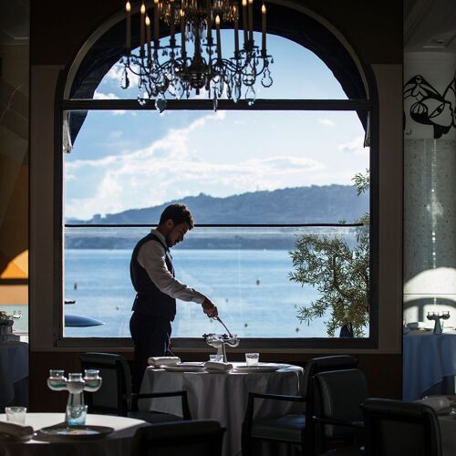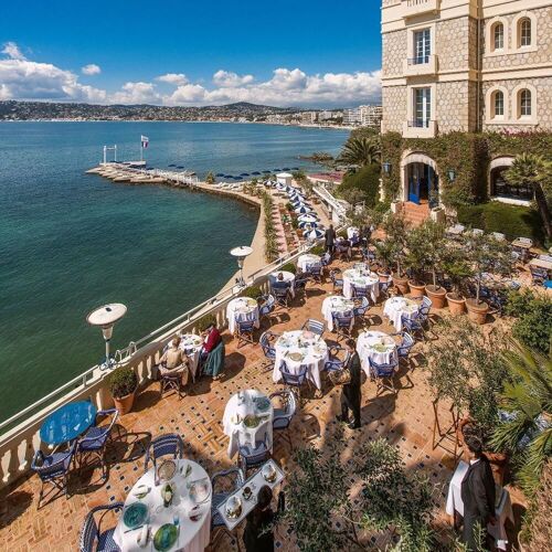 The first thing to strike guests in this hotel, where F. Scott and Zelda Fitzgerald's tumultuous romance played out in the 1920s, is its jaw-dropping location. It's not easy for a chef to make his mark in such a setting, but Aurélien Véquaud does just that. In a high-flying menu pulsating with Mediterranean flavours (such as little tunny, semi-confit tomatoes and rucola vinaigrette), the chef's origins – the Vendée in western France – still shine through on each plate. Unpasteurised cream jazzes up the crab in the signature dish (a soft esquinado cannelloni, verbena foam and fennel), and the marinière of shellfish seasoned with Oscietra caviar accompanies the sea bass. As for the desserts, pastry chef Steve Moracchini treats us to his fragrant strawberry concoction with geranium and rose. The terrace commands a breathtaking view of the sea and the mountains of the Estérel.