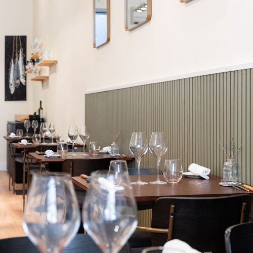 Behind wrought-iron railings, this handsome establishment ushers diners into a tastefully understated interior (white walls, parquet floors, wooden chairs and tables) and an open-plan kitchen helmed by Michel Marini and Kim-Mai Bui. This veteran duet (formerly of William Ledeuil, Christophe Moret, Gérald Passedat…) crafts a flavoursome, legible, delicate score with a Mediterranean spin and invariably dotted with herbs they pick themselves. Everything is steeped in crisp, expressive flavours, examples of which include lightly seared squid with a salmorejo sauce or wild seabass in fig leaves. The desserts are low on sugar yet highly addictive!