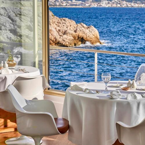 Descended from a family of artists, Gérald Passédat was practically born in his restaurant a few metres from the sea, which "nourishes and inspires [him]". The Mediterranean, its fish and shellfish are the backbone of his culinary identity. The chef crafts precise and pared-back seafood-forward cuisine that is personal to him; absolute freshness and the use of ingredients in their entirety are key. Highlights from the menu include the yellowtail and black sea bream duo, raw and smoked in-house, accompanied by cauliflower, Oscietra caviar and bottarga, and the remarkable red mullet prepared in a variety of ways: cooked au naturel, matured and raw, or charcuterie-style, with a star anise consommé. Many of the robust and carefully crafted sauces and broths are made using heads, livers and cooking juices. The "Ma Bouille Abaisse" set menu unfolds in a fascinating sequence of flavours. Over 65 species, caught with longlines and with consideration for the marine ecosystem, are featured over the course of the seasons. The breathtaking view of the Mediterranean adds to the feeling of abundance. The attentive yet discreet service is pitch perfect.