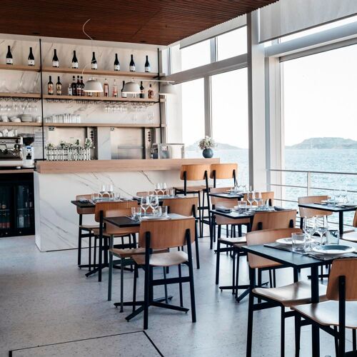On the doorstep of Catalans beach, this restaurant with floor-to-ceiling windows commands an idyllic view over the Bay of Marseille, between the Swimming Club and the Frioul archipelago. Philippine-born chef, Chester Tsai (who has worked all over the world for Alain Ducasse) rolls out Mediterranean cuisine and more exotic dishes of Philippine and Singaporean descent: tomato, pepper and cucumber gazpacho with a garlic and pine nut sauce; seabream paired with orange-glazed fennel and a buttery, Timut pepper-flavoured sauce.
