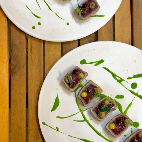 Here in the historical heart of the fortified town, Raphaël (on savoury dishes) and Marion (desserts) delight diners with their no-nonsense and full-flavoured bistronomy creations. At dinner, a tasting menu features the restaurant's namesake dish of spelt risotto with lobster. Don't miss the pastry chef's signature dessert: Caribbean chocolate mousse and cocoa sorbet.