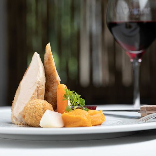 This chef, originally from Vietnam, meticulously prepares inventive and instinctive cuisine that is constantly evolving. The single multi-course set menu allies local produce and exotic touches in dishes that are colourful and fragrant. With its exposed beams and hardwood floors, the traditional interior opens onto a veranda that leads onto a pleasant terrace overlooking an imposing metal statue of a rearing horse.