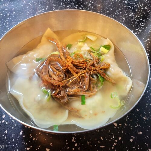 Mandutguk, or Korean dumpling soup, is a dish that is deeply rooted in the day-to-day lives of Koreans. Owner Yoon Young-sook became acquainted with Hwanghaedo-style dumpling soup through her mother-in-law, a native of Sariwon, which is north of the border. To emulate the pure taste of the original dumpling filling, Yoon says she follows her recipe to the tee and feels very proud when she hears customers say her dumplings remind them of their own grandmother's.
