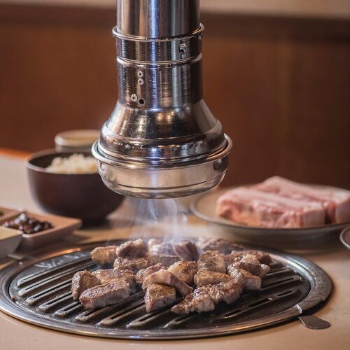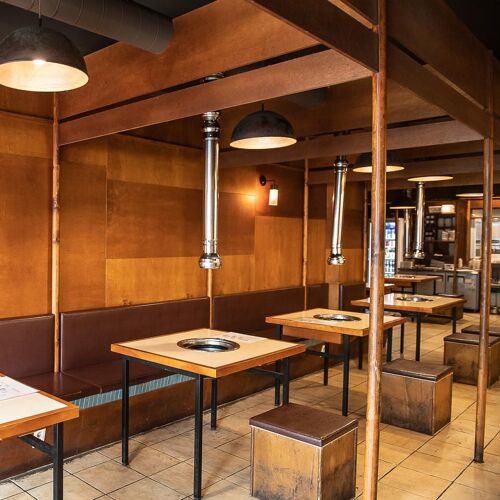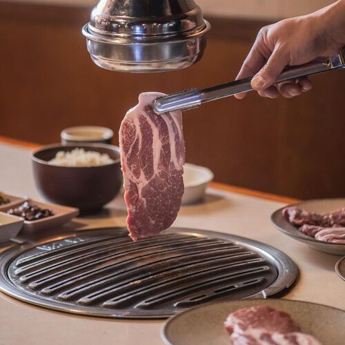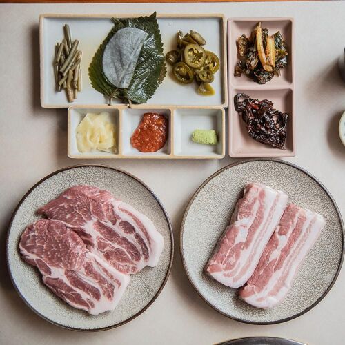 Situated right near Sinsa station, this restaurant specializes in grilled pork butt cured for 15 days before being quickly grilled on a specially made aluminum grate over Binchotan charcoal. Thanks to this method of cooking, the meat is fatty, tender, and juicy. As in the case of sushi, when it is eaten with rice (prepared with a recipe conceived by a Japanese consultant chef) and Korean horseradish, the meat juice is absorbed by the rice, making it even softer. The side orders are not to be missed.