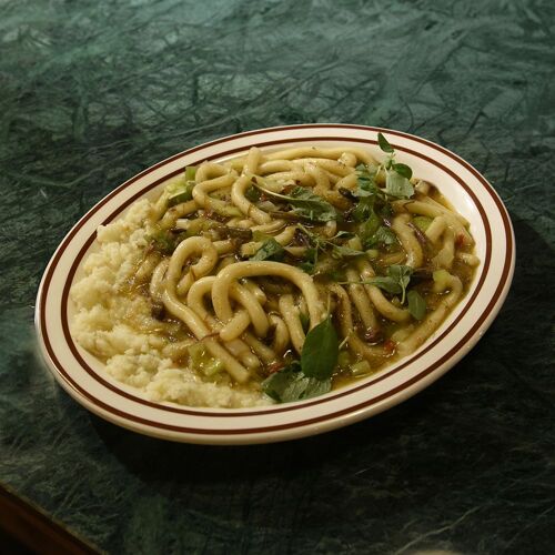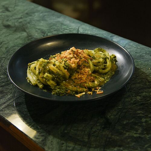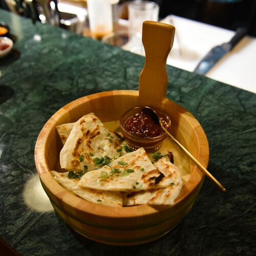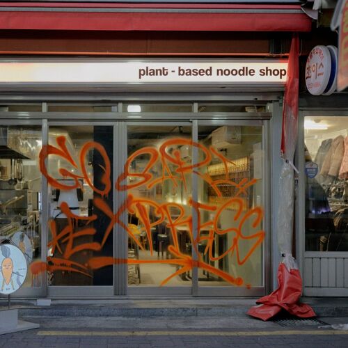 Tucked beneath a red awning in Sindang-dong Jungang Market, Gosari Express stands out among the neighborhood’s old eateries. With the motto “Vegetarian everyday,” it offers a playful, flavorful approach to plant-based dining. Every dish features their signature fernbrake (gosari) oil sauce. Highlights include bibim noodles with nutty perilla seed powder, chickpea hummus, and a spicy veggie oil, as well as Taiwanese pancakes topped with sweet and tangy gosari chili sauce. This inventive spot hints at the boundless potential of gosari.