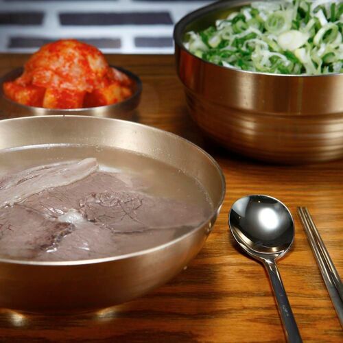 This beloved family-owned culinary landmark, located on a busy side street in Myeong-dong, has been serving rustic bowls of beef bone soup since 1939. The version here is served in traditional brass bowls with rice already submerged in the hot soup. The broth is pure and rich with an unmistakable sweetness that can only result from boiling large amounts of beef for a long period of time. This old-fashioned, no-fuss eatery opens early in the morning and closes when its soup vats run dry.