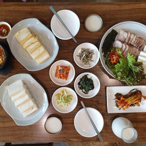 Hwanggeum Kongbat focuses on nourishing, comforting Korean cuisine, using domestically grown soybeans to craft their house-made tofu. Seasoning is kept light to highlight the natural flavors of each ingredient, resulting in dishes that are gentle yet flavorful. Standouts include jjabak dubu, dubu jorim, dubu jeongol, dubu jeon, and dubu duruchigi, all beautifully paired with house-brewed takju made from just rice, nuruk, and water. While tofu is the star, the menu also features pork bossam, yuk jeon, and various seafood options, offering a well-rounded, soulful dining experience.