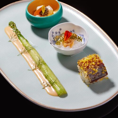 Kojacha — Korean (“Ko”) chefs’ Japanese (“ja”) and Chinese (“cha”) cuisine. The shared culinary ambition of Chefs Choi Yu-gang and Jo Yeong-du, who previously cooked at The Shilla Hotel, has given rise to a distinct culinary genre. From its vintage lighting and furniture from the 50s and 60s that creates a singular vibe to a course meal that alternately features Chinese and Japanese dishes, this is a true icon. Signature dishes include chilled abalone salad, served in a replica of the peacock-shaped soap dish used by an empress of the Qing Dynasty, and shark fin braised in thick Chinese Superior Stock. The chefs’ performance-inspired table is a veritable display of their culinary narratives and enriches the eatery’s appeal. All dining spaces are in the form of private rooms.