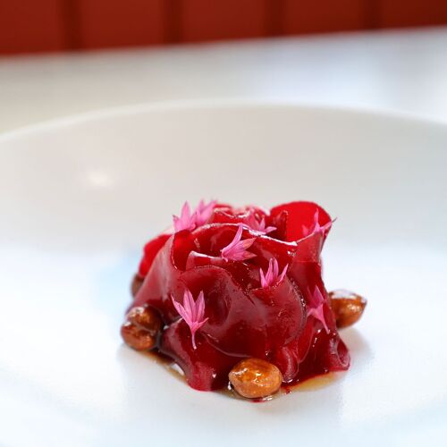 The raised open kitchen with its sizable brigade of chefs adds a little theatre to the dining experience at Chef Park Moo-hyun’s stylish restaurant. A smart, well-versed team of servers is also on hand to guide you through the meal. The set menu challenges the taste buds by mixing up dishes whose flavor combinations are complementary with those whose make-up is more innovative and unexpected. Presentation is strong–beets with goat’s cheese and hazelnuts is as delicious as it is good-looking–and dessert is often a highlight.